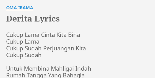 Derita Lyrics By Oma Irama Cukup Lama Cinta Kita